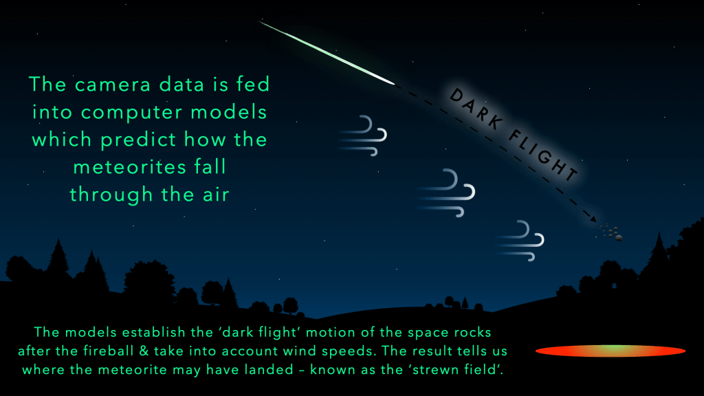 - determine if any meteorites are likely to have made it to the surface, and if so, where they may have landed (strewn field).